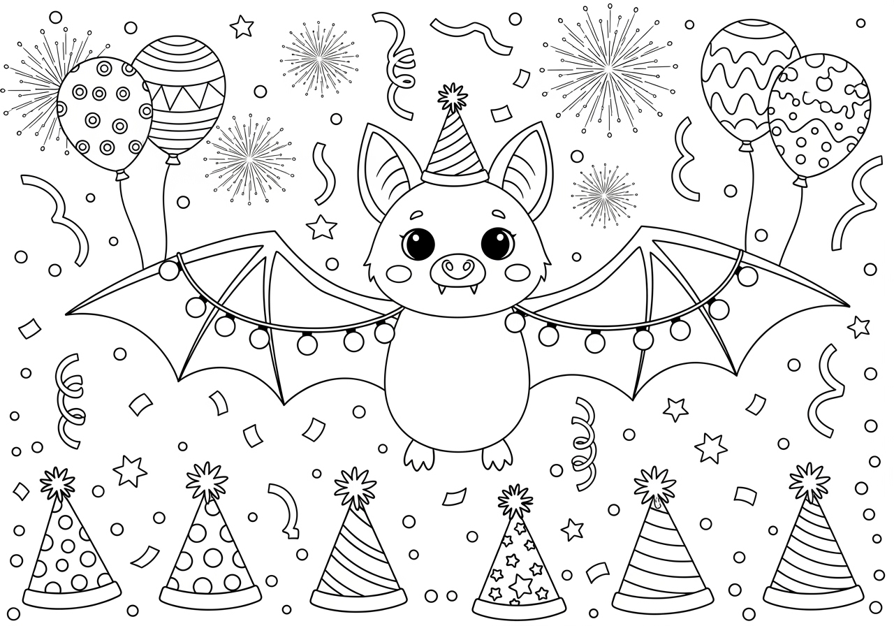 Introduce your little ones to a world of festive fun with our "Christmas bat wearing a Santa hat coloring page." This delightful coloring page captures the whimsical charm of a bat joyfully celebrating Christmas. With its wings spread wide, the bat wears a traditional Santa hat, complete with a fluffy white pom-pom, and is adorned with a playful string of Christmas lights. The scene is set against a backdrop of gently falling snowflakes and twinkling stars, creating a magical winter wonderland. Perfect for children aged 3-6, this coloring page not only provides entertainment but also encourages creativity, fine motor skills, and relaxation. Ideal for use in the classroom, at home, or during holiday travels, it offers a joyful and imaginative activity that fosters a sense of accomplishment. Download and print this charming page to add a touch of Christmas cheer to your child's coloring adventures.