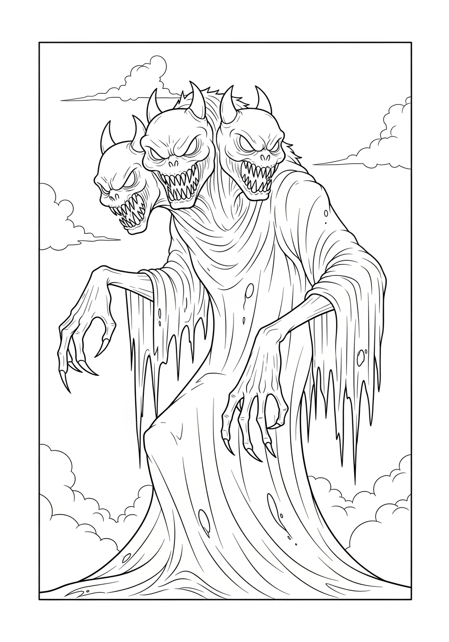 Michael Myers with Black Cat and Pumpkins Coloring Page