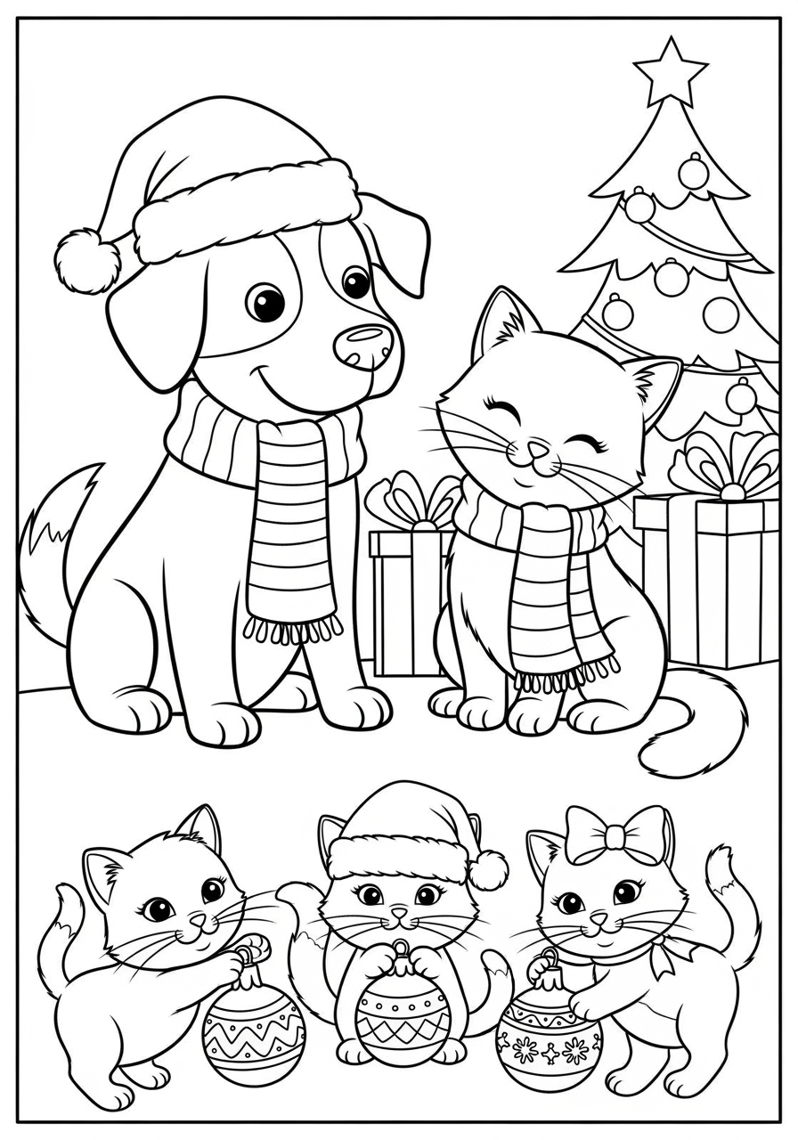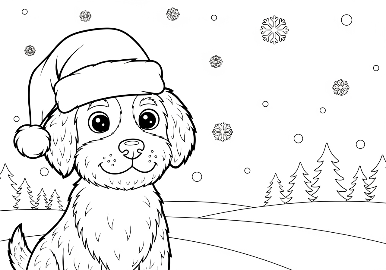 Dog with Santa Hat Coloring Page