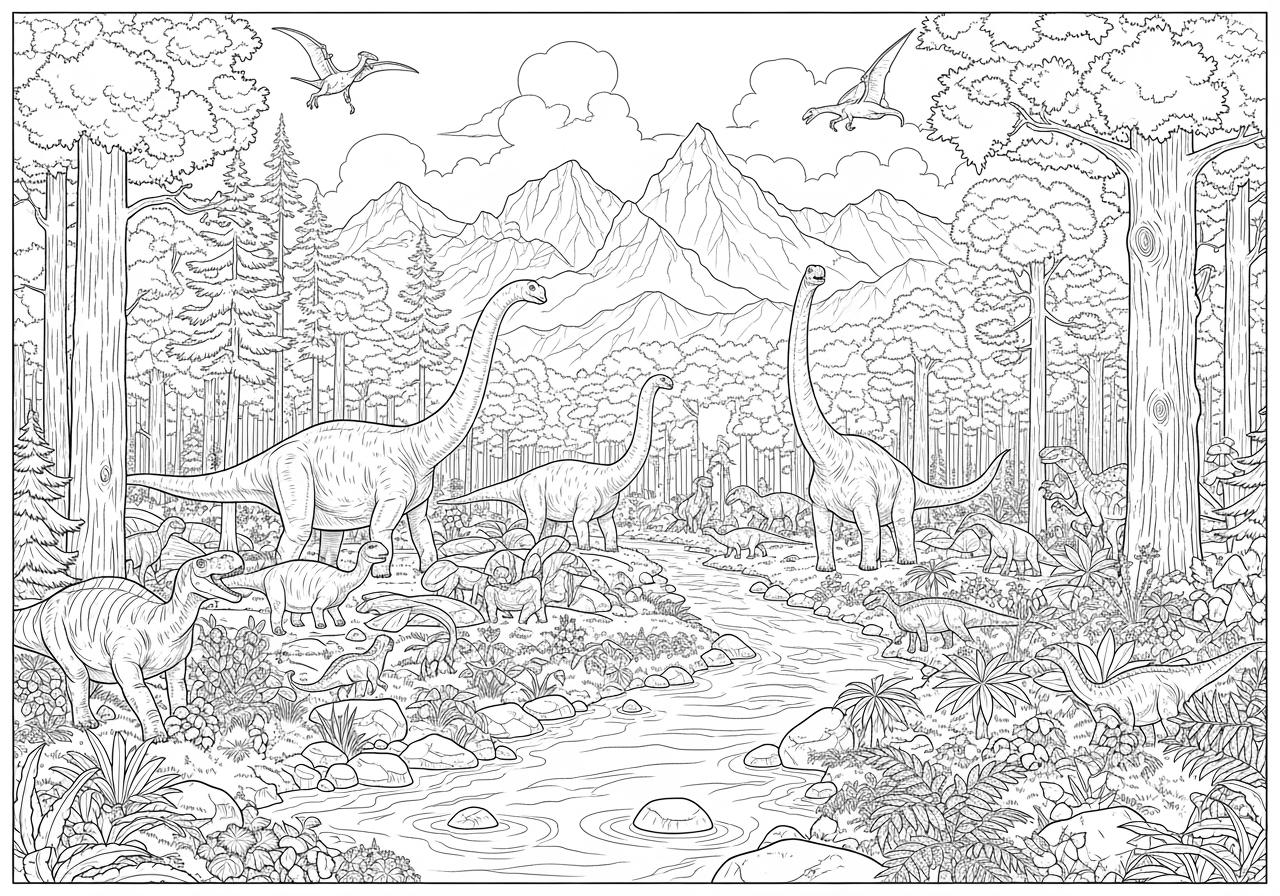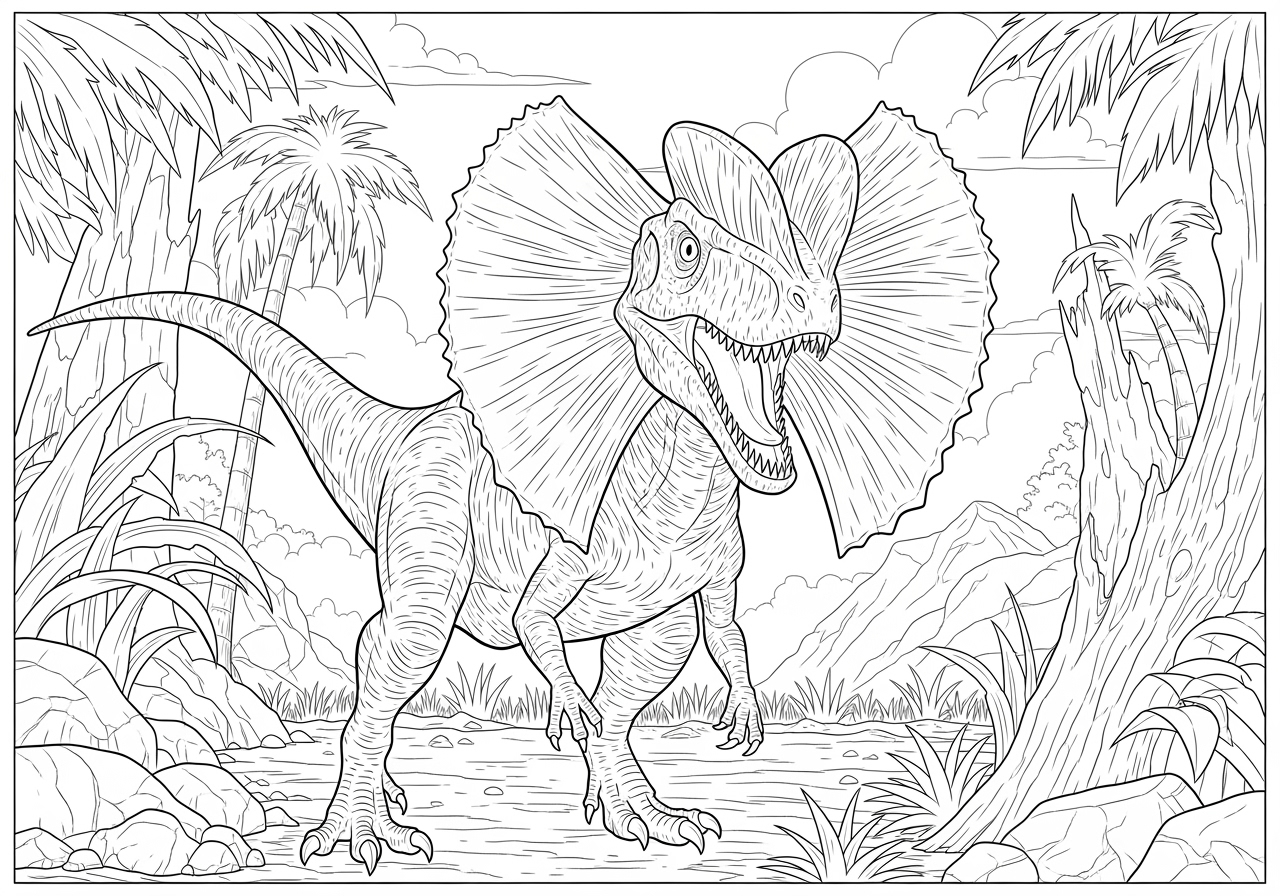 Explore the world of prehistory with our "Scary Dinosaur Adventure," a captivating black-and-white line art illustration perfect for children ages 3-6. This scary dinosaur coloring page is designed to ignite young imaginations while enhancing creativity and fine motor skills. Featuring a fearsome dinosaur mid-roar, its large sharp teeth and glaring eyes promise an exciting coloring experience. The dinosaur stands amidst a richly detailed prehistoric habitat filled with tall trees, ferns, and rocky landscapes, providing ample opportunity for children to explore their color palettes. As they fill in the bold outlines, they will not only enjoy a sense of accomplishment but also relax and focus, making it an ideal activity for mindfulness and stress relief. Suitable for home crafts, classroom activities, or travel, this printable scary dinosaur coloring page offers endless fun and learning. Whether you're searching for scary dinosaurs coloring pages or simply want to enrich your child's creative play, this page is a fantastic choice. Download, print, and let the prehistoric adventure begin!