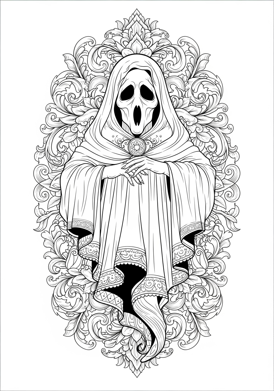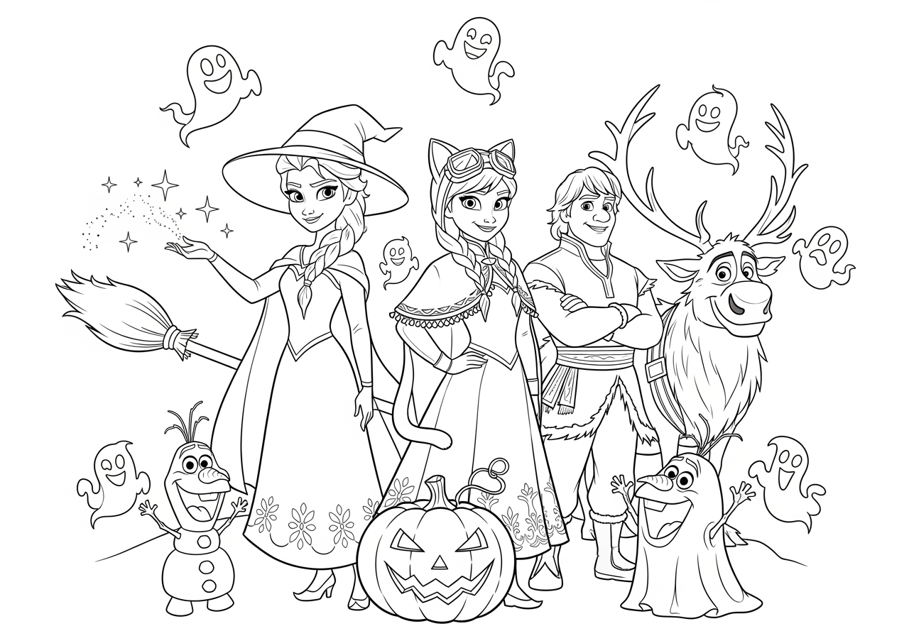 Our "Bunny Halloween Coloring Page" invites young artists into a magical world filled with joy and imagination. This charming illustration showcases a delightful bunny, joyfully perched on a grassy field, adorned with a wizard hat sprinkled with stars and moons. Set against a backdrop of an enchanting forest, children will be captivated by the glowing full moon surrounded by decorative clouds, and ancient trees with twisted branches, all crafted in clear, bold outlines that are perfect for little hands to color. The scene is brought to life with playful Halloween elements—floating ghosts with happy expressions dance around the bunny, and a funny-faced pumpkin beams from the corner. A bubbling magic cauldron adds to the mystical ambiance, with stars and sparkles scattered across the sky. Perfect for use at home, in the classroom, or on the go, this coloring page fosters creativity, fine motor skills, and relaxation. It's a delightful way to celebrate the festive spirit of Halloween while encouraging a sense of accomplishment and imaginative play. Download this page to give your child hours of joyful coloring and the perfect Halloween craft.