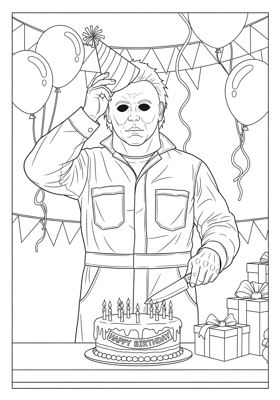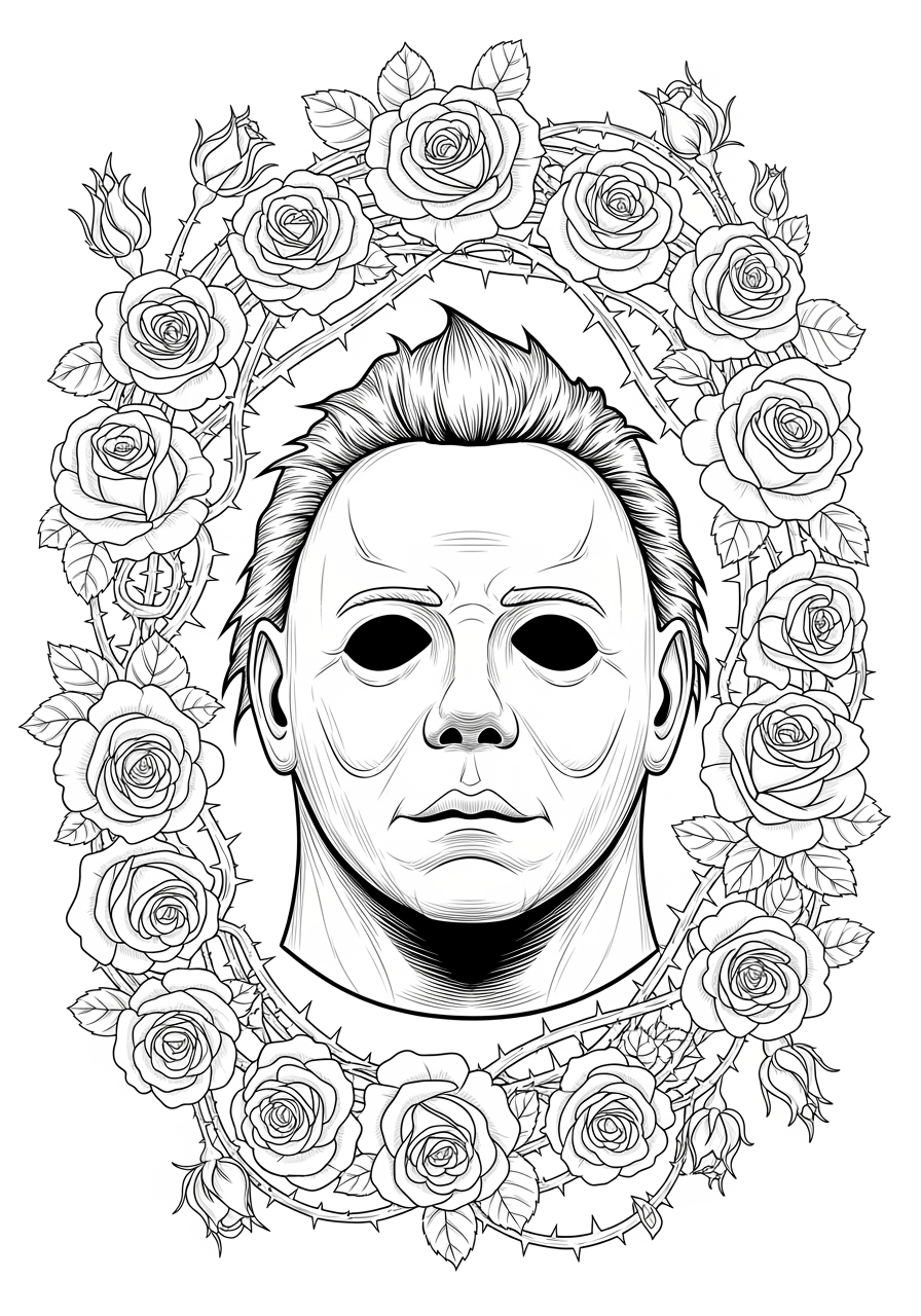 This coloring page is ideal for adults seeking a meditative experience through creativity and relaxation. Coloring enthusiasts can enjoy enhancing fine motor skills and patience while immersing themselves in this intricate design. Whether used in a classroom, at home, or on the go, this coloring page offers a unique blend of mindfulness and artistic expression, making it a perfect resource for parents and educators alike. Download this printable page to explore the spooky allure of Halloween coloring pages featuring Michael Myers, and experience the joy of bringing this haunting scene to life.