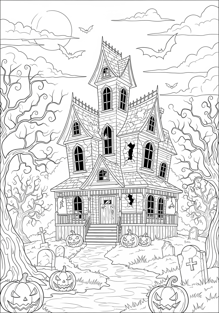 Haunted House Spooky Halloween Coloring Page