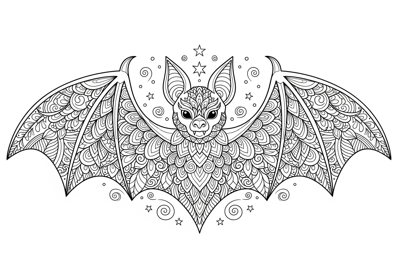 Zentangle Pattern Bat Coloring Page