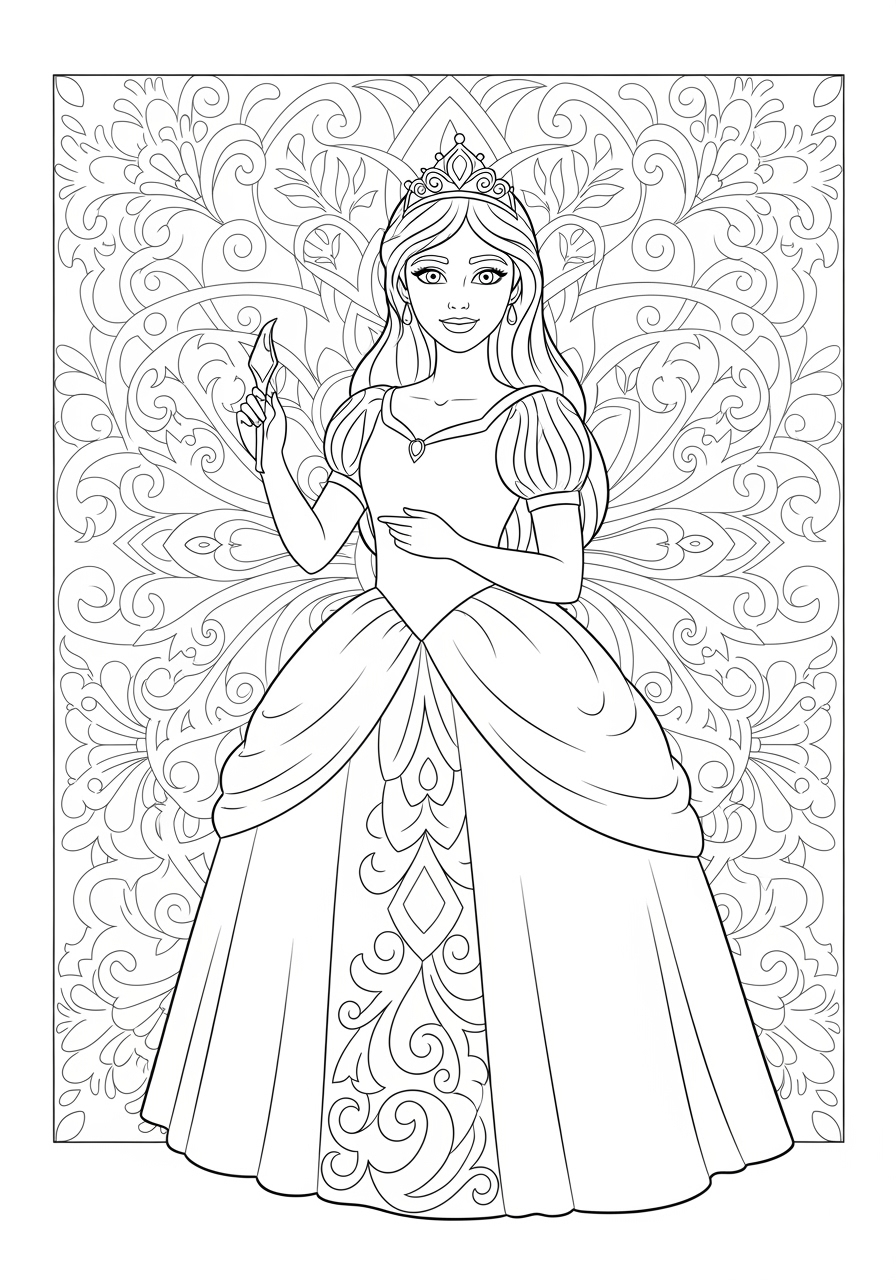 Introduce your child to a world of festive creativity with our "Belle Christmas Coloring Page." This enchanting page captures the spirit of the holidays with a graceful woman, Belle, who embodies joy and elegance. Adorned in a stunning winter-themed dress with intricate snowflake patterns, Belle holds a beautifully wrapped gift, inviting children to imagine the warmth and joy of Christmas giving. The background features a magnificent Christmas tree, sparkling with ornaments and softly falling snowflakes, creating a cozy, festive atmosphere.