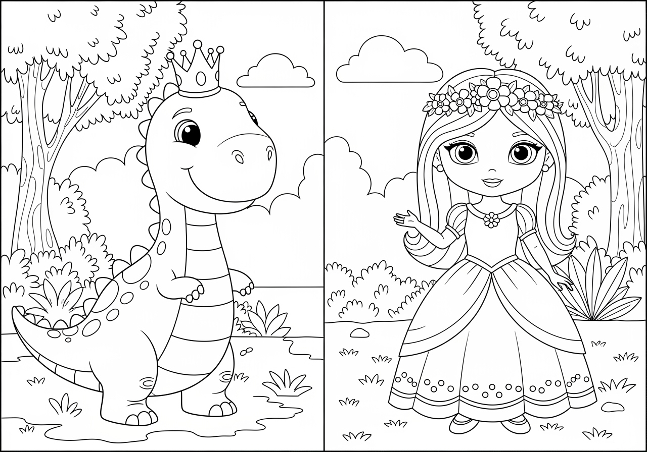 Princess Dinosaur Picture to Print Out and Color