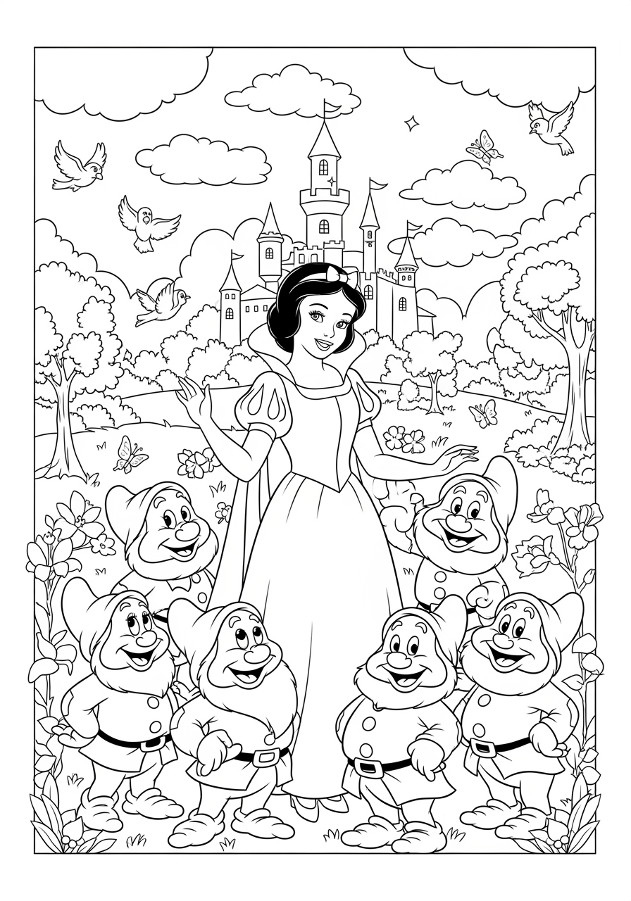 Coloring Page Snow White and the Seven Dwarfs